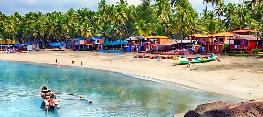 Agonda Beach, located in South Goa, is a tranquil and picturesque stretch of golden sand flanked by coconut palms and casuarina trees. Known for its serene atmosphere and stunning sunsets, it's the perfect spot for relaxation and unwinding. Visitors can enjoy a peaceful retreat, with opportunities for dolphin spotting, leisurely walks, and exploring nearby eateries and shops.