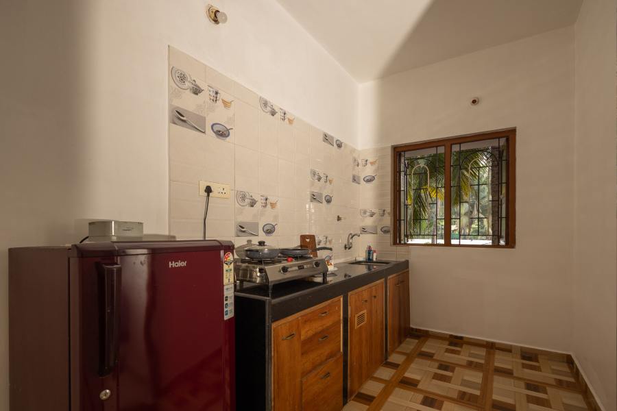 The Standard 1 Bedroom Apartment at Cashew Garden homestay offers a perfect blend of elegance, comfort, and modern amenities, designed to make your stay truly memorable. Spacious and tastefully decorated, the room features cozy bedding, warm lighting, kitchen ,and thoughtfully crafted interiors that create a welcoming ambiance. Large windows open up to mesmerizing views of the goa's beach, allowing you to wake up to sun-kissed peaks or unwind under starlit skies. Equipped with essential conveniences like an electric kettle, complimentary Wi-Fi, and a flat-screen television, along with a stylish en-suite bathroom, the Standard 1 Bedroom ensures both relaxation and functionality. Ideal for couples, families, or solo travelers seeking a peaceful retreat.